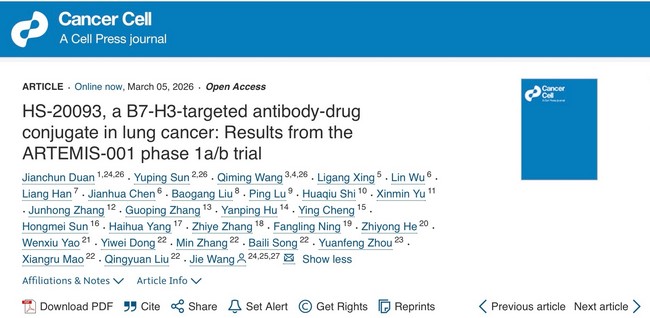 SHANGHAI, March 6, 2026 — Hansoh Pharmaceutical Group Co., Ltd. (“Hansoh Pharma,” 03692.HK) today announced that results from expansion cohorts of ARTEMIS-001 (NCT05276609), a first-in-human Phase 1a/1b study evaluating risvutatug rezetecan (HS-20093 / GSK5764227) in patients with previously treated advanced solid tumors, have been published as a research article in Cancer Cell (Impact Factor: 44.5).