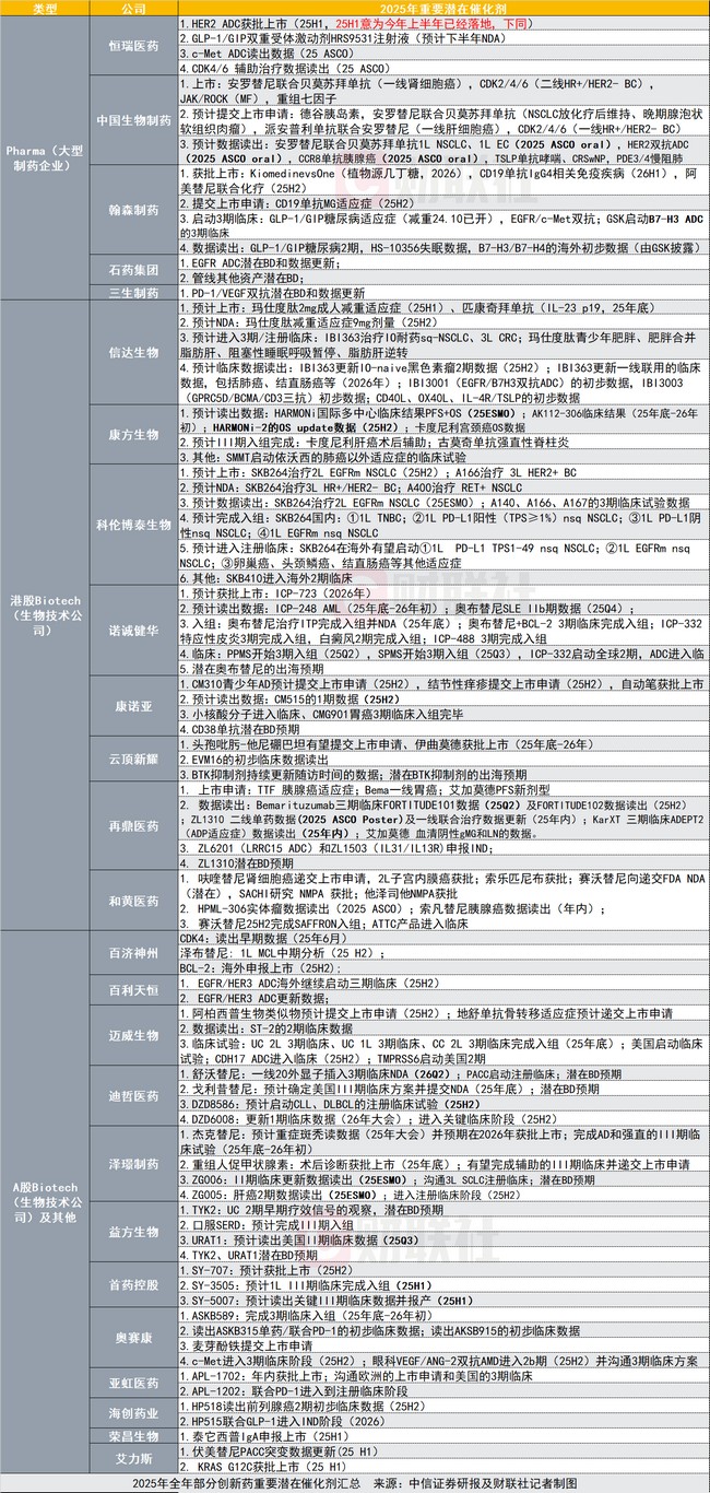 ③2025年下半年多个创新药龙头公司催化剂密集,其进展值得期待。