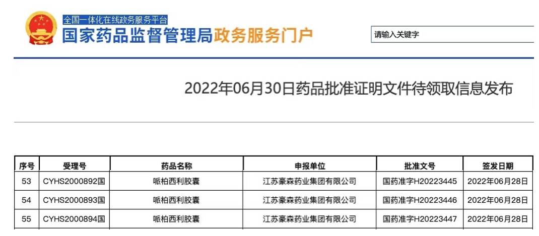 7月4日,翰森制药(股票代码:3692.HK)发布公告,其附属公司云顶国际药业开发的抗肿瘤药物--哌柏西利胶囊获得国家药品监督管理局(NMPA)颁发的药品注册证书,适用于激素受体(HR)阳性、人表皮生长因子受体2(HER2)阴性的局部晚期或转移性乳腺癌,与芳香化酶抑制剂联合使用作为绝经后女性患者的初始内分泌治疗。